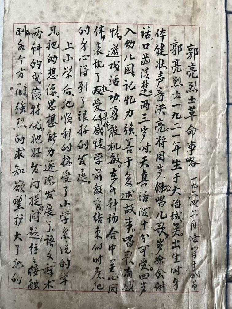 郭超翼追憶女兒郭亮撰寫的回憶錄原件