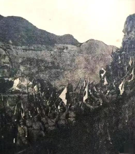 日寇軍官在大冶露天鐵礦前
