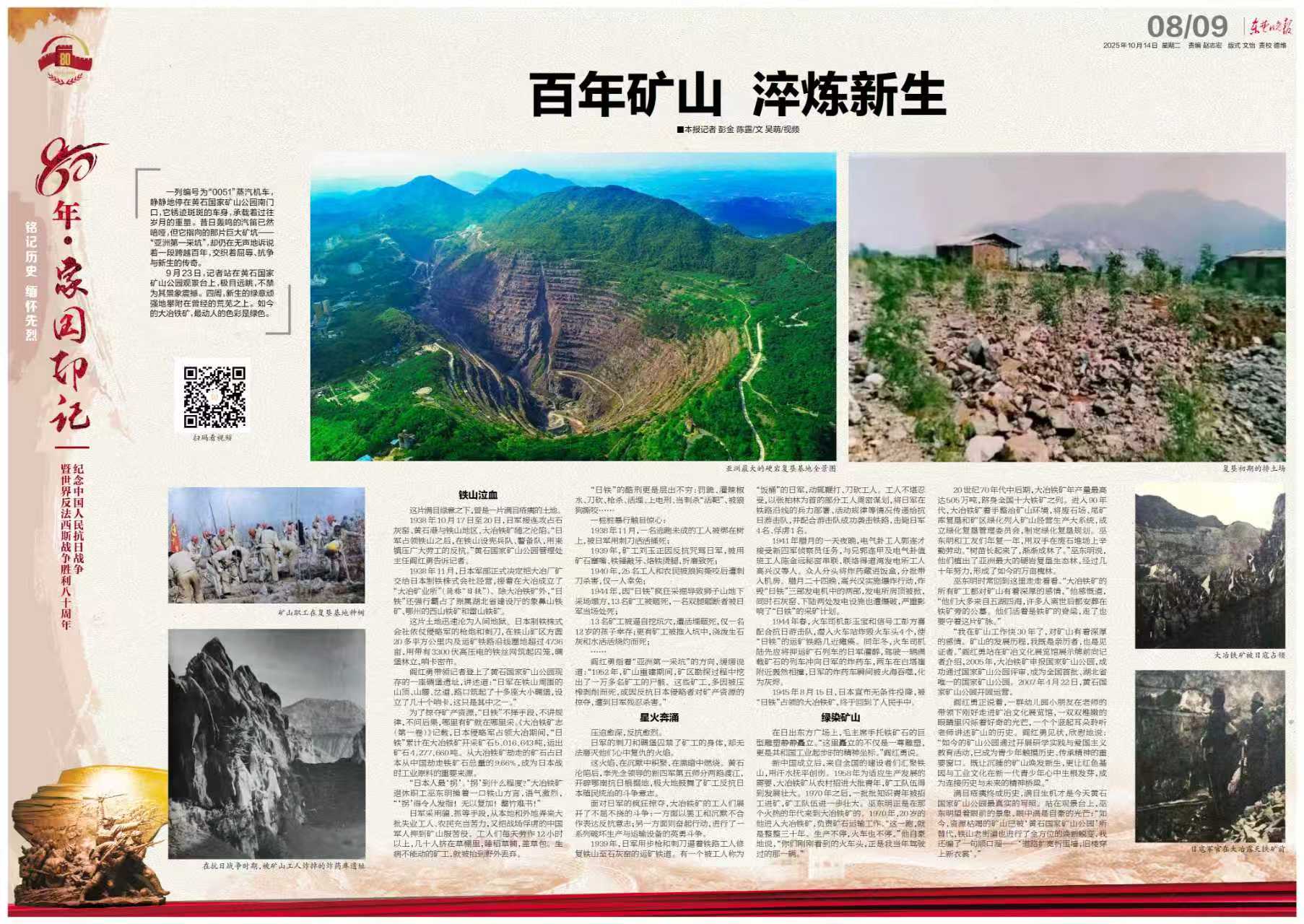 滿目瘡痍終成歷史,滿目生機才是今天黃石國家礦山公園最真實的寫照。站在觀景臺上,巫東明望著眼前的景象,眼中滿是自豪的光芒:“如今,資源枯竭的礦山已被‘黃石國家礦山公園’所替代,鐵山老街道也進行了全方位的煥新蛻變,我還編了一句順口溜——‘道路擴寬拆圍墻,舊樓穿上新衣裳’?!保ㄓ浾摺∨斫稹£惵叮模?/p>