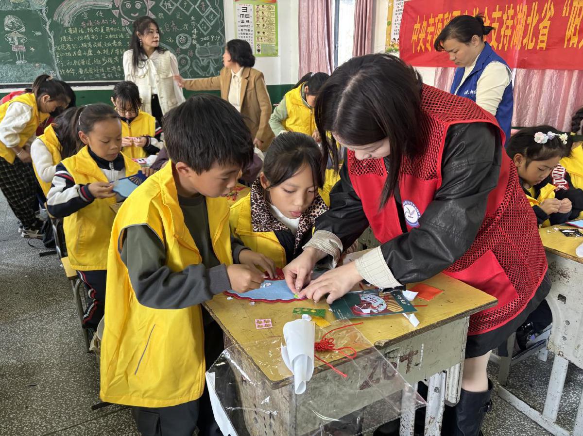 志愿者和學(xué)生們一起制作“五常掛飾”